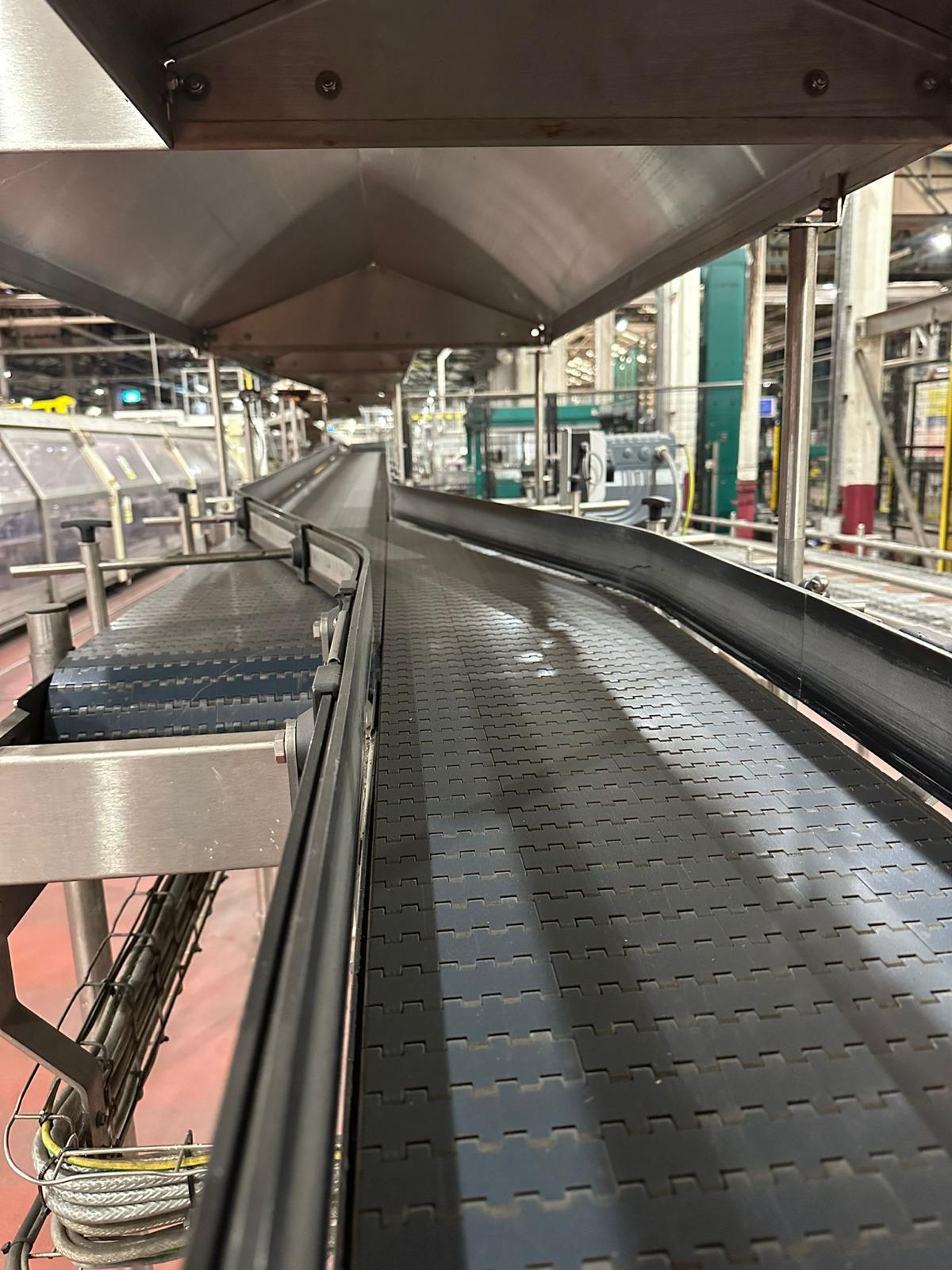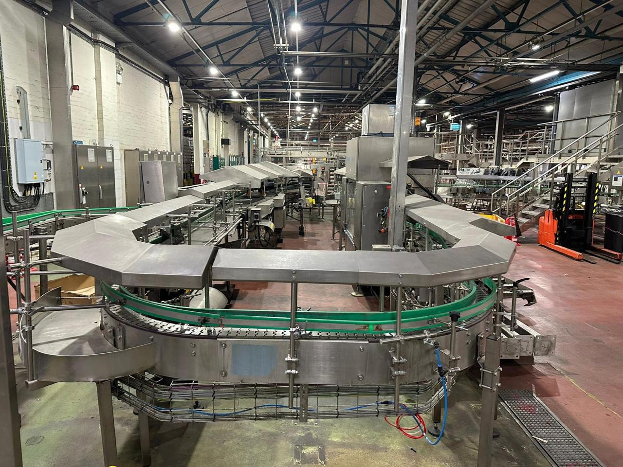Das SIPAC Fördersystem (Baujahr 2016) ist eine hochwertige Förderanlage für leistungsstarke Abfüll- und Verpackungslinien mit einer Kapazität von bis zu 40.000 Flaschen pro Stunde. Die Anlage wurde für den dauerhaften Industrieeinsatz konzipiert und zeichnet sich durch robuste Verarbeitung, zuverlässige Technik und vollintegrierte Elektroschränke für eine effiziente Steuerung aus.